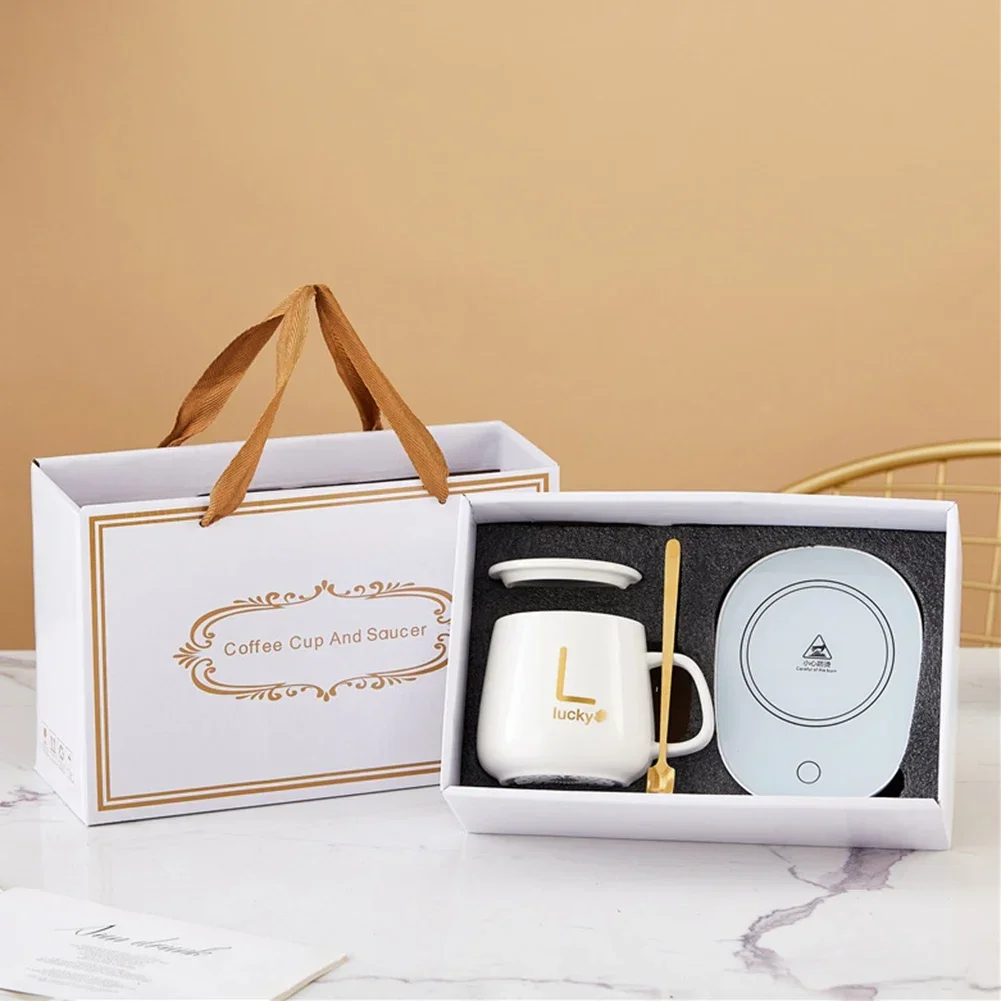 Mug à café avec support chauffant automatique, température constante de 55°C. Ensemble de tasse en céramique avec support chauffant, idée cadeau parfaite.