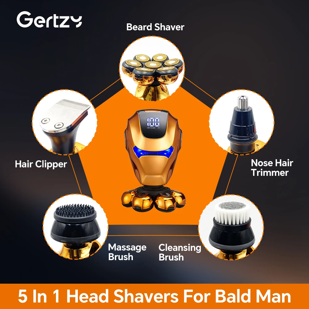 LED digital electric shaver set - nose hair trimmer, hair clipper, cleaning brush, exfoliating brush